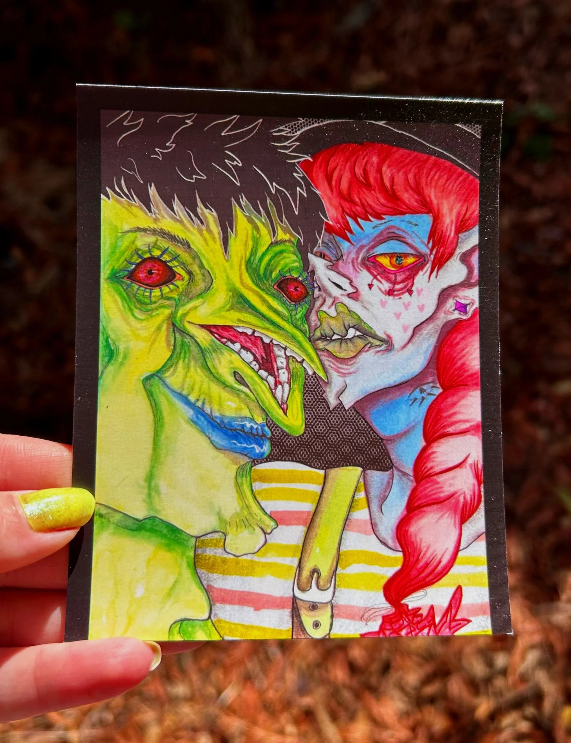 Art For Weirdos! Categories: All Sculptural Items Tote Bags Upcycled Clothing Prints Patches Stickers All | Sculptural Items | Tote Bags | Upcycled Clothing | Prints | Patches | Stickers | Sticker Ornaments $5.00 Too Many Feelings Print $20.00 Candy Cane Cat Say's Merry Christmas! $10.00 "My Inner Child Is Pissed" Patch $3.00 Christmas Tree Furby Sticker $4.00 Candy Cane Clown Cat Sticker $4.00 Misfit Sticker $4.00 Strange Couple $5.00 Upcycled Grey Patch Flannel Sale Price: $40.00 Original Price: $45.00 Sale Upcycled Purple Patch Flannel Sale Price: $40.00 Original Price: $45.00 Sale Upcycled Green Patch Flannel Sale Price: $40.00 Original Price: $45.00 Sale Upcycled Green Patch Jacket $45.00 Fruit Magical Girls! Print $10.00 Bad Emotion Print $5.00 Bog Witch Print $5.00 Gator Witch Print $5.00 The Goose Is Loose Print $5.00 Decadent Wolf $5.00 Going Places Print $20.00 Clown Head Print $20.00 "Get Organized" Print $20.00 DEVILISH HEART PRINT $5.00 Rat Clown $10.00 Bunny Clown $10.00 Clown Cat $10.00 Clown Animal Bundle $25.00 SadBoy BadClown Patch $4.00 Sparkle Clown Patch $3.00 Candle Patch $3.00 Sold out Butterfl-Eye Patch $3.00 Bill Bill Bill Patch $3.00 Party Ghost Patch $2.00 Here Lies Squidward's Hopes and Dreams Patch $5.00 Love Potion Patch $5.00 Sold out Dead Mans Party Patch Sale Price: $4.00 Original Price: $7.00 Sale SLIME PATROL Patch $5.00 "IM JUST A GIRL" Patch $13.00 Sold out Baby Your a Haunted House Patch Sale Price: $10.00 Original Price: $13.00 Sale Pumpkin Patches Sale Price: $2.00 Original Price: $4.00 Sold out Bat Wings Patch $10.00 Sold out Party Ghost $3.00 Holographic dancing cat clown $6.00 Sold out Strawberry MilkBrains Sticker $3.00 Catsup and Muttstard Sticker $4.00 Sold out Bad Brain Boy sticker $4.00 "IM JUST A GIRL" Sticker $4.00 Bunny Clown Sticker $4.00 Sold out "Let's Get Takeout" Sticker $4.00 Clown Rat Sticker $4.00 Devilish Heart Sticker $4.00